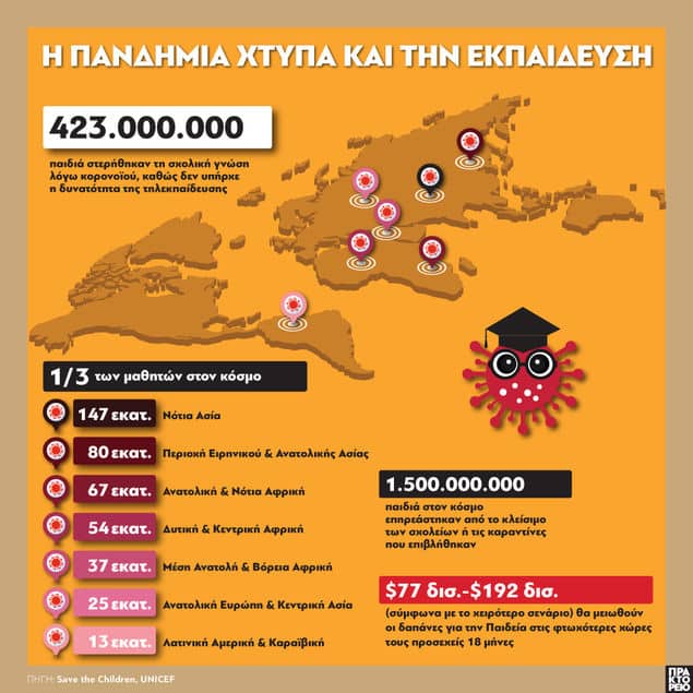Η πανδημία χτυπά και την εκπαίδευση 10:05 2020-09-02 - grammateia Περίπου 423 εκατομμύρια παιδιά στερήθηκαν τη σχολική γνώση λόγω κορονοϊού καθώς δεν υπήρχε η δυνατότητα τηλεκπαίδευσης, σύμφωνα με τα στοιχεία της UNICEF που αποτυπώνονται στο γράφημα Πηγη:/ ΑΠΕ – ΜΠΕ