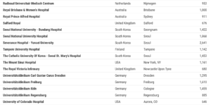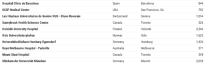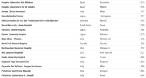 Η Ελλάδα απουσιάζει πλήρως από την κατάταξη, ενώ εντύπωση προκαλεί ότι η κατάταξη περιλαμβάνει 7 νοσοκομεία της Ισπανίας και ένα του Ισραήλ και μάλιστα στην 9η θέση. Στην κατάταξη χρησιμοποιήθηκε και η καθοδήγηση από ένα ανεξάρτητο συμβούλιο ειδικών (Global Experts).