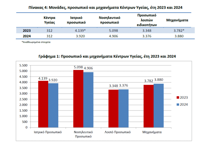 Από τη σύγκριση των στοιχείων των Κέντρων Υγείας των ετών 2023 και 2024 παρατηρούνται τα ακόλουθα σύμφωνα με την ΕΛΣΤΑΤ: