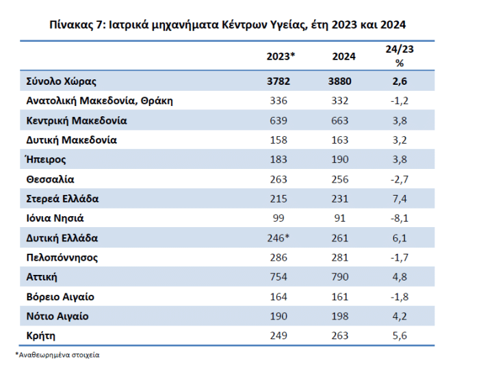 Στα ιατρικά μηχανήματα που διαθέτουν τα Κέντρα Υγείας παρατηρήθηκε αύξηση στο σύνολο της xώρας το 2024 σε σχέση με το 2023 κατά 2,6%