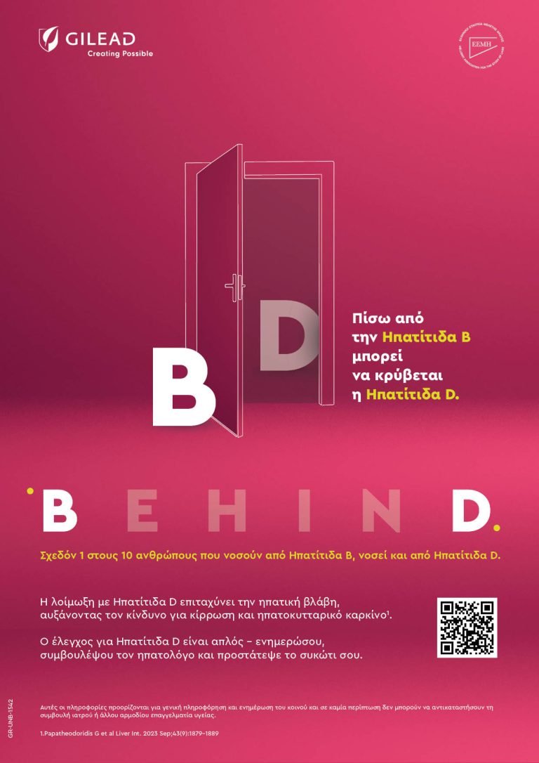 Πίσω από τη Ηπατίτιδα Β μπορεί να κρύβεται η σοβαρότερη μορφή ιογενούς ηπατίτιδας: η Ηπατίτιδα D (HDV). Παρά τη βαρύτητά της, συχνά παραμένει αδιάγνωστη, καθώς εξελίσσεται σιωπηλά, επιβαρύνοντας σημαντικά την υγεία του ήπατος. Με στόχο να αναδείξει αυτή την «αόρατη» απειλή, η Gilead Sciences Ελλάδος, σε συνεργασία με την Ελληνική Εταιρεία Μελέτης Ήπατος (Ε.Ε.Μ.Η.), υλοποιεί την καμπάνια ενημέρωσης BehinD – Πίσω από την Ηπατίτιδα Β μπορεί να κρύβεται η Ηπατίτιδα D.