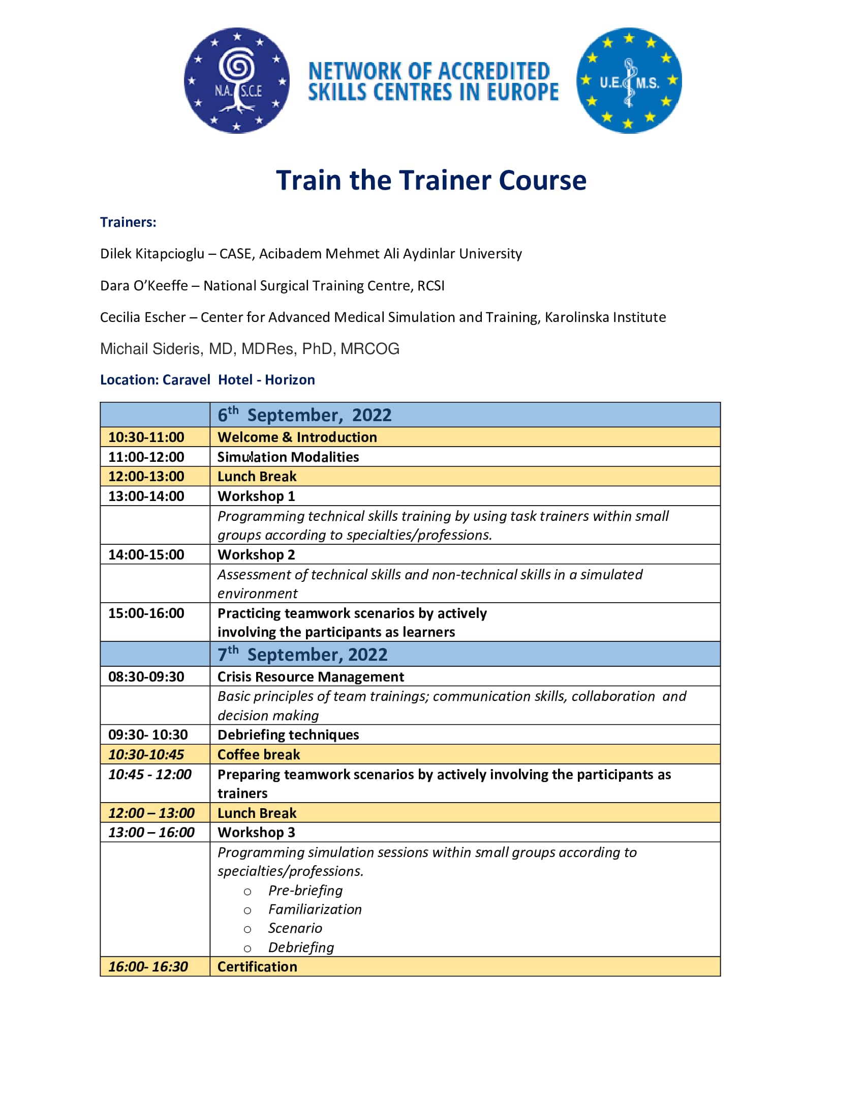Το Train the Trainers Course έχει ξεχωριστή Μοριοδότηση και εγγραφή και είναι πιστοποιημένο από την UEMS.