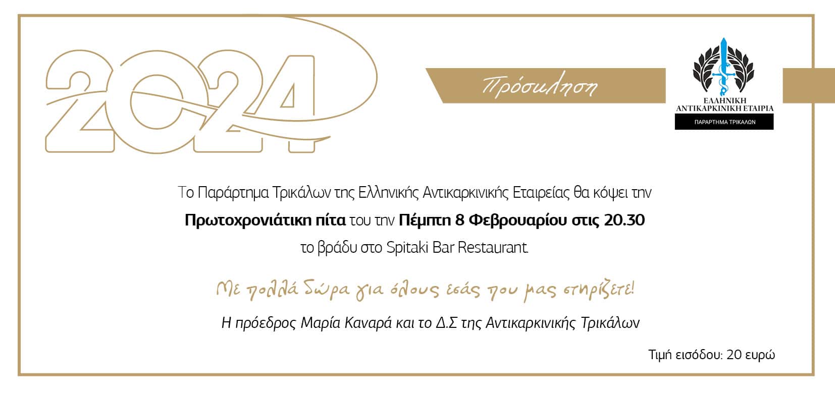 Πρόσκληση Ελληνικής Αντικαρκινικής Εταιρείας -παράρτημα Τρικάλων