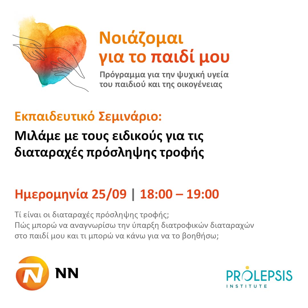 Στο διαδικτυακό εκπαιδευτικό σεμινάριο που θα πραγματοποιηθεί την Τετάρτη 25/9/2024 στις 18.00, θα μιλήσουμε αναλυτικά για τον σημαντικό ρόλο των γονέων στον τομέα της πρόληψης και έγκαιρης αντιμετώπισης των διαταραχών πρόσληψης τροφής.