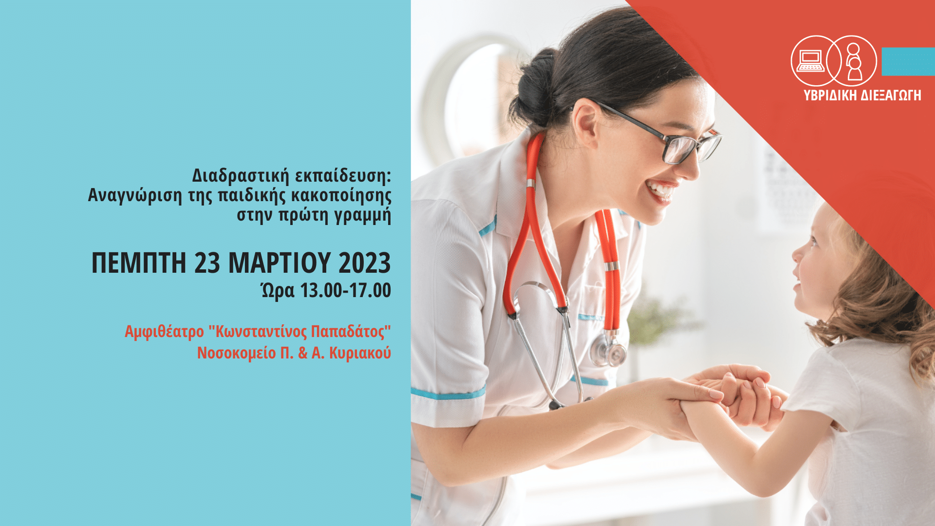 Εκ μέρους του Σωματείου ΕΛΙΖΑ – Εταιρία κατά της Κακοποίησης του Παιδιού, θα θέλαμε να σας ενημερώσουμε για μία διαδραστική εκπαίδευση που θα υλοποιηθεί την επόμενη Πέμπτη 23 Μαρτίου και στόχο έχει να επιμορφώσει επαγγελματίες υγείας για τη διαχείριση περιστατικών παιδιών με υποψία σωματικής κακοποίησης.