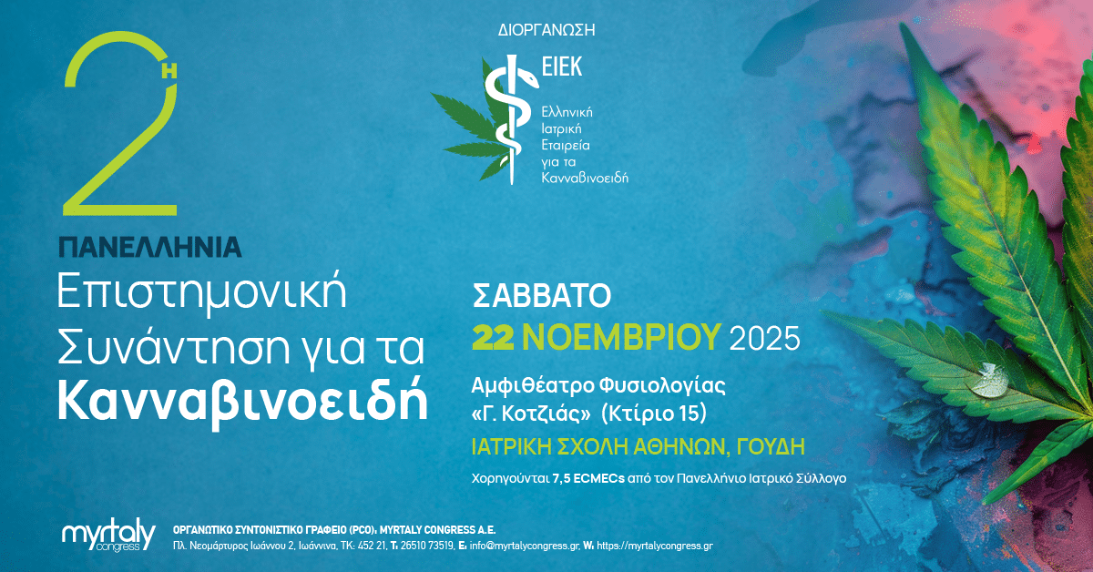 Σημείο αναφοράς για την ελληνική ιατρική και φαρμακευτική κοινότητα φιλοδοξεί να αποτελέσει η Πανελλήνια Επιστημονική Συνάντηση για τα Κανναβινοειδή, προσφέροντας ένα «βήμα» ενημέρωσης, τεκμηριωμένης γνώσης και επιστημονικού διαλόγου γύρω από τη χρήση των κανναβινοειδών στη θεραπευτική πρακτική.