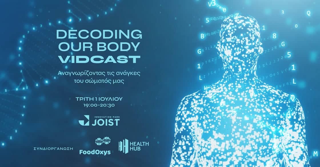 Το JOIST Innovation Park, ο Ευρωπαϊκός Κόμβος Ψηφιακής Καινοτομίας Health Hub και η καινοτόμος εταιρεία βιοτεχνολογίας FoodOxys σας προσκαλούν στο Vidcast με τίτλο «Decoding Our Body: Αναγνωρίζοντας τις ανάγκες του σώματός μας» που συνδιοργανώνουν την Τρίτη 1 Ιουλίου 2025, από τις 19:00 έως τις 20:30.