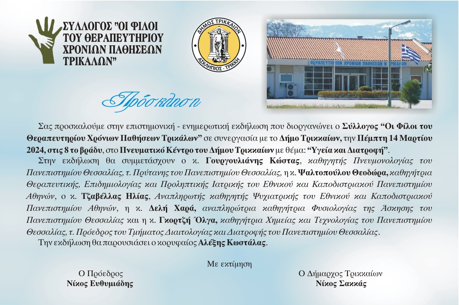 Eπιστημονική – Ενημερωτική εκδήλωση: “Διατροφή και Υγεία” 14-03-2024