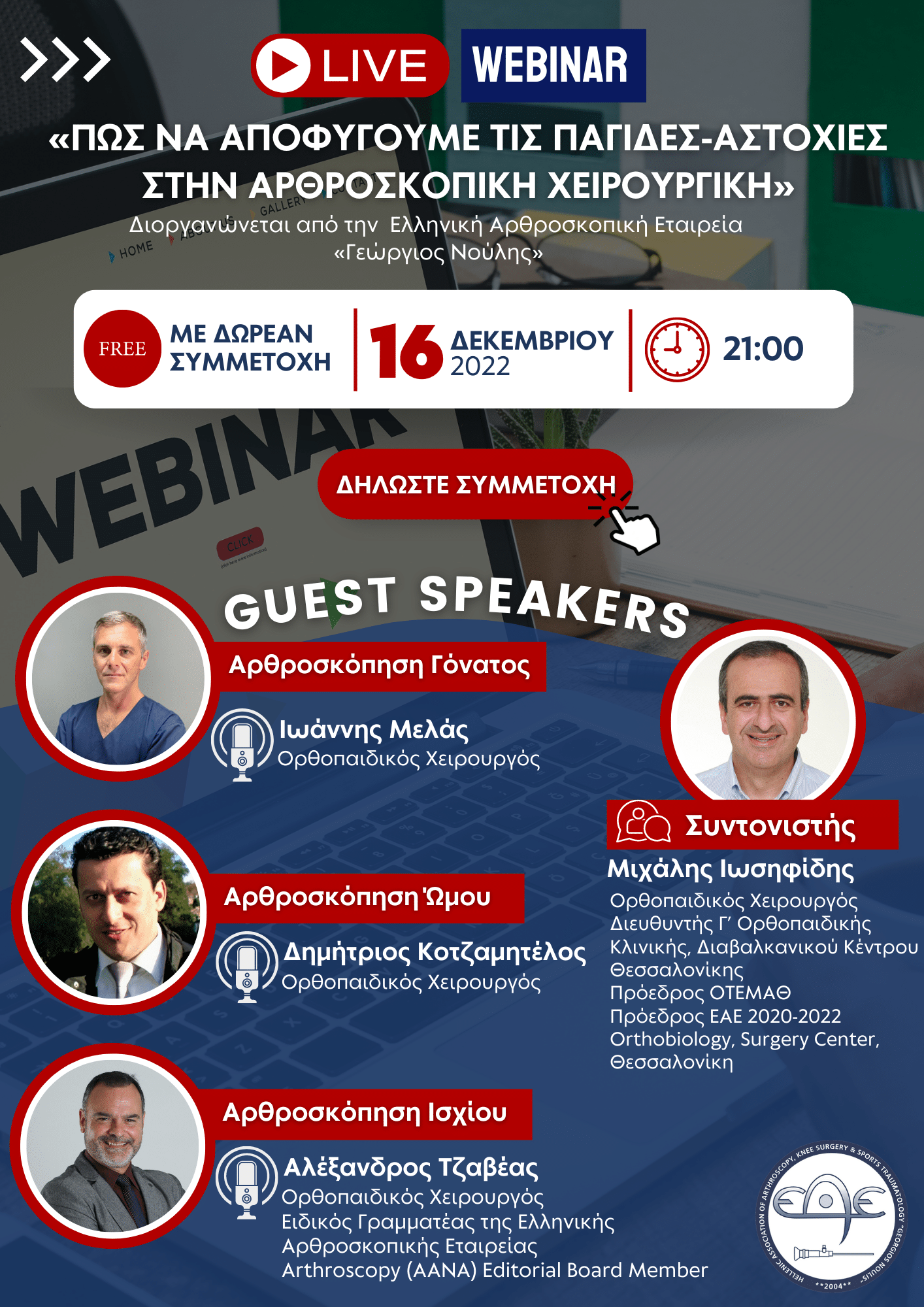 Webinar με θέμα «Πώς να αποφύγουμε τις παγίδες-αστοχίες στην Αρθροσκοπική Χειρουργική»