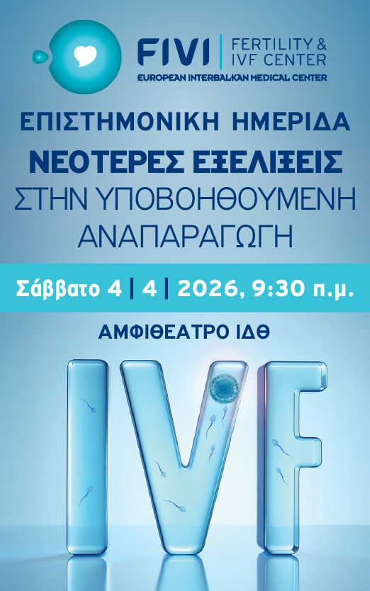 Με ιδιαίτερη χαρά σας προσκαλούμε να συμμετάσχετε ενεργά στην επιστημονική ημερίδα της Μονάδας Ιατρικώς Υποβοηθούμενης Αναπαραγωγής «FIVI» με θέμα: «ΝΕΟΤΕΡΕΣ ΕΞΕΛΙΞΕΙΣ ΣΤΗΝ ΥΠΟΒΟΗΘΟΥΜΕΝΗ ΑΝΑΠΑΡΑΓΩΓΗ 2026», η οποία θα διεξαχθεί δια ζώσης το Σάββατο 4 Απριλίου 2026 στο Αμφιθέατρο του Ιατρικού Διαβαλκανικού Θεσσαλονίκης.