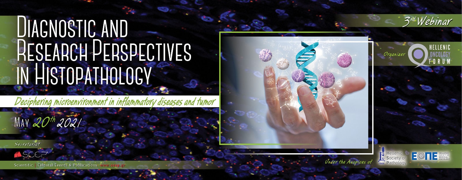 | The webinar series organized by Hellenic Oncology Forum entitled “Diagnostic and Research Perspectives in Histopathology” bring together experts from various fields of cancer care in order to familiarize a broad audience with current diagnostic and research issues in cancer pathology and oncology. It is within our scope to promote interactions and encourage stimulating discussions between speakers, chair panels and participants, as well as to favor new collaborations.